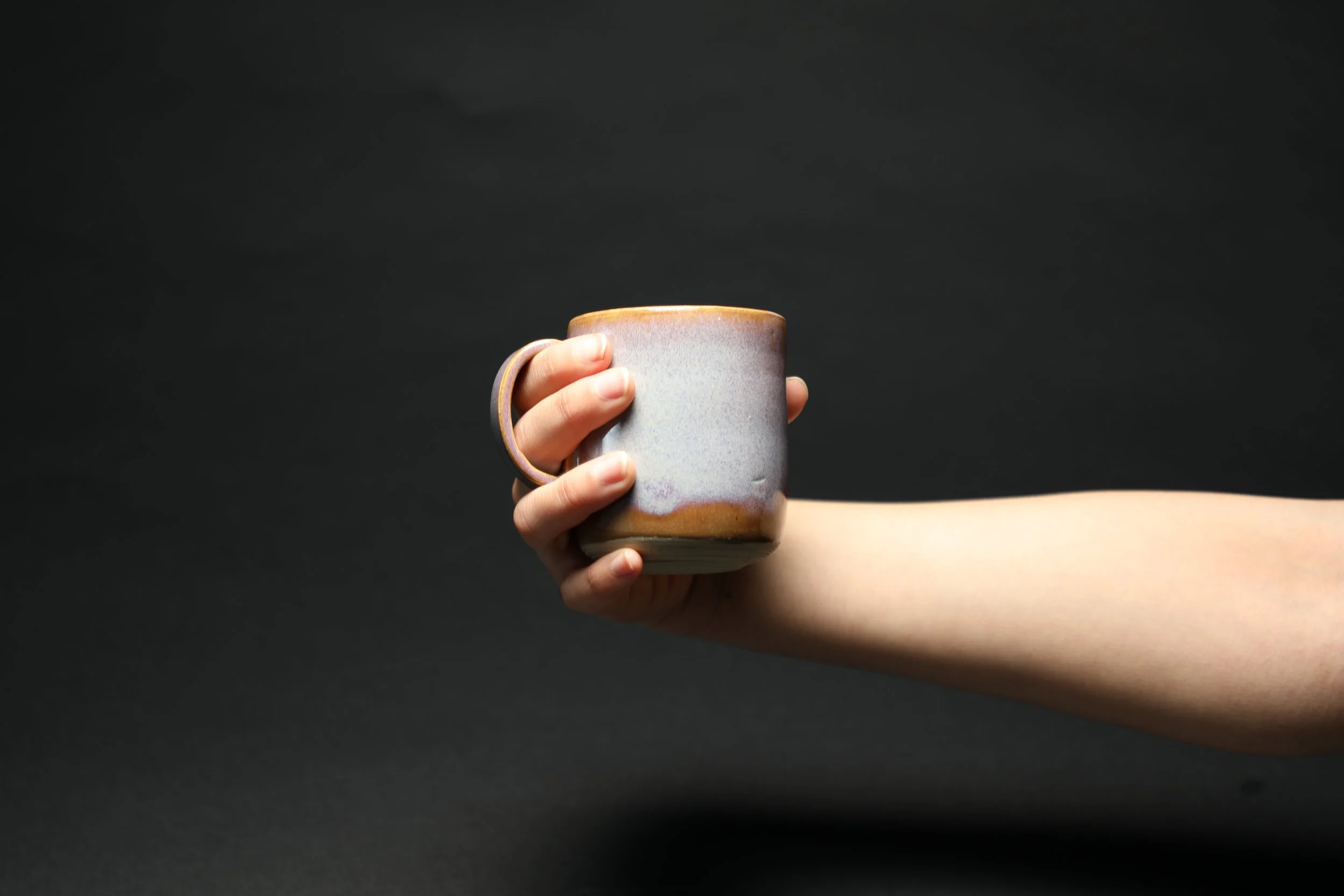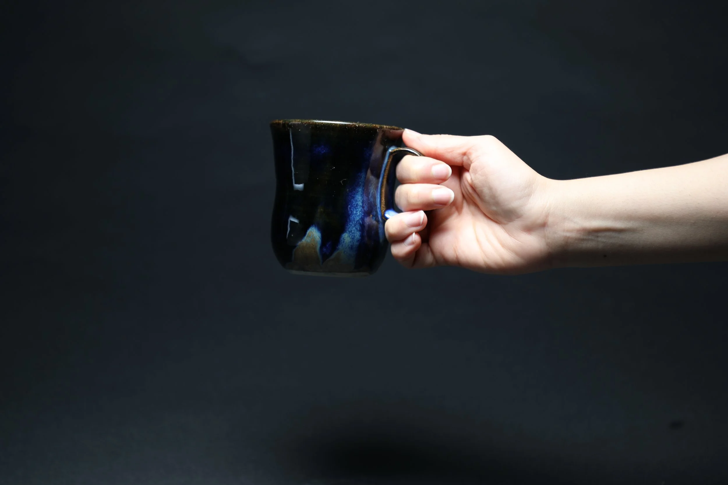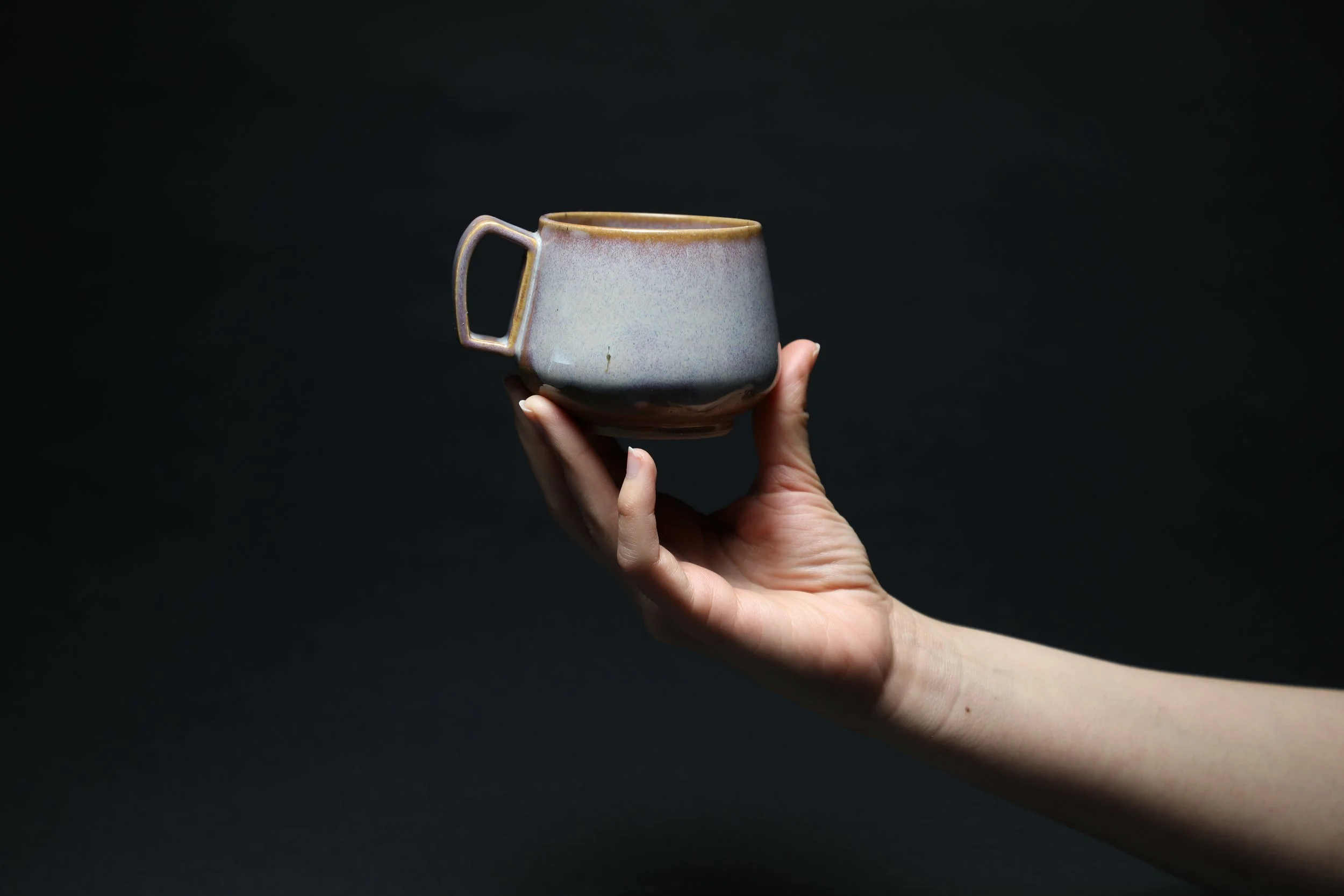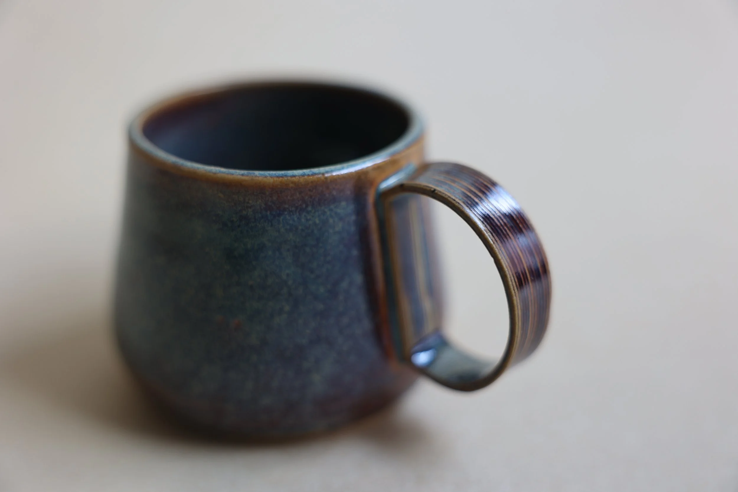 Each cup features a meticulously thrown body, shaped on the potter's wheel, showcasing the organic textures and subtle variations inherent in hand-formed pottery. Complementing this artisanal approach, the handles are crafted using a clay printer, allowing for precise designs that enhance both comfort and geometric perfection. This fusion not only honors the ancient art of ceramics but also embraces modern techniques, resulting in functional art that is as pleasing to the eye as it is to the hand. Each cup is finished with a hand-applied glaze, further emphasizing the individuality of each piece and ensuring that they are true reflections of both skill and creativity.